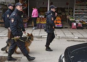 Виды Ялты. Сотрудники полиции на одной из улиц города.