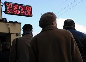 Жанровая фотография. Информационное электронное табло пункта обмена валют с курсом доллара и евро.