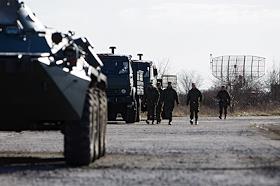 Военная техника репетирует парад Победы на военном аэродроме.