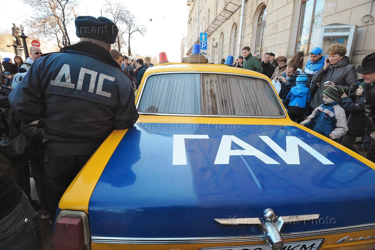 Парад, посвященный 116-летней годовщине со дня запуска первого трамвая в Москве. Сотрудник…