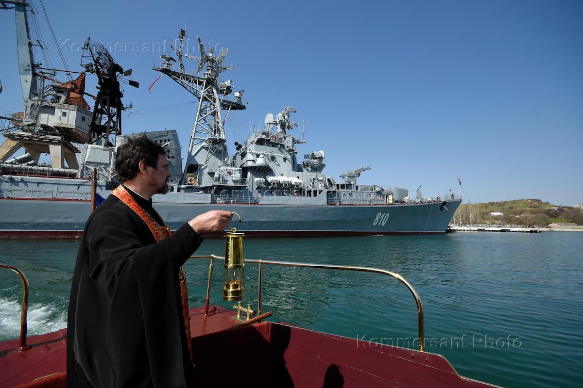 Прибытие благодатного огня в Севастополь к морякам черноморского флота в Севастополе, корабль "Сметливый".