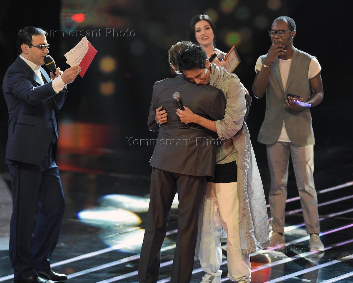 Композитор Виктор Дробыш (слева) во время финала шоу "Главная сцена" в павильоне "Главкино".