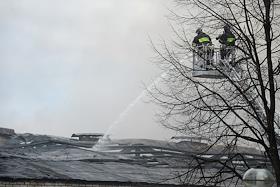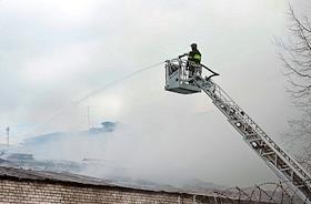 Пожарные расчеты МЧС России во время ликвидации пожара на складах с металлоконструкциями на…