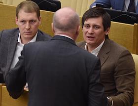 Член комитета Государственной думы (ГД) России по промышленности Валений Омельченко (слева) и …