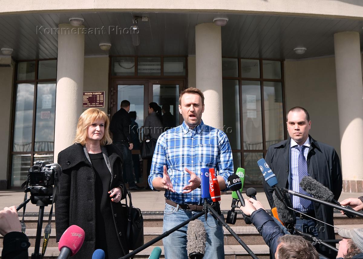 Слева направо: адвокат Ольга Михайлова, председатель партии "Партия прогресса" Алексей Навальный и…