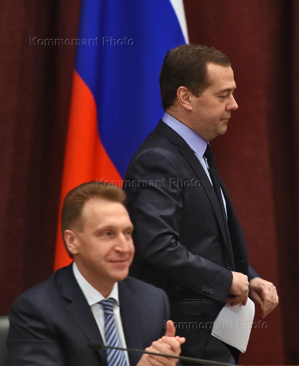 Председатель правительства России Дмитрий Медведев (слева) и первый заместитель председателя…