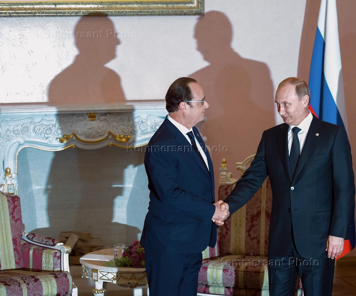 Рабочая поездка президента России Владимира Путина в Армению. Президент Франсуа Олланд (слева) и…
