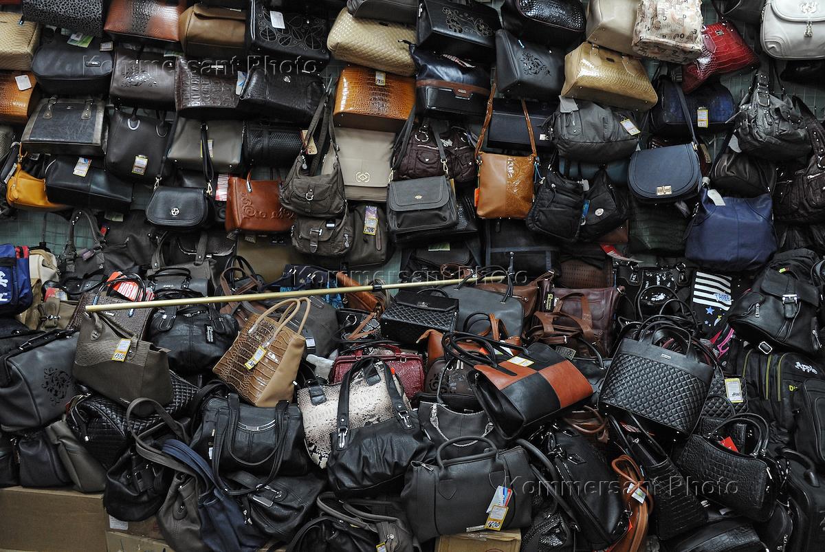 Жанровая фотография. Торговый ряд по продаже сумок на рынке в Боровичах.