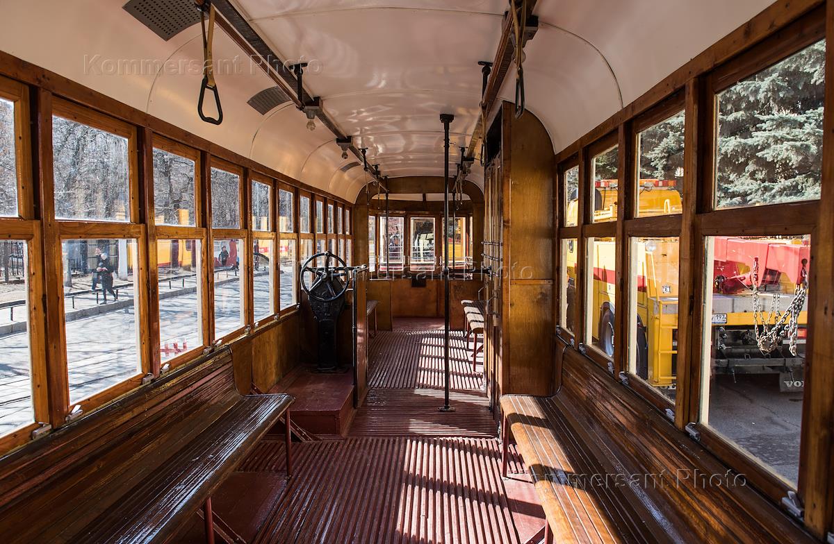 Парад трамваев, посвященный 116-летию московского трамвая. Исторические вагоны проехали от…