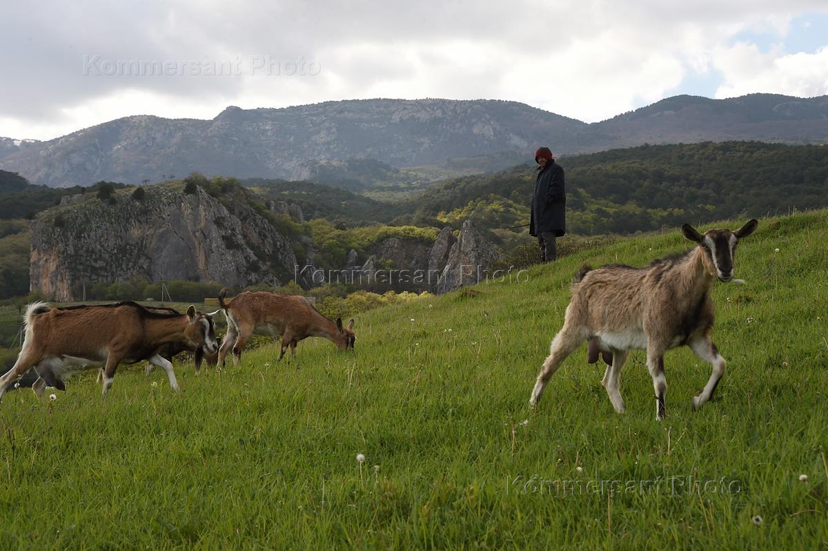 Жанровая фотография. Пастух пасет стадо коз.