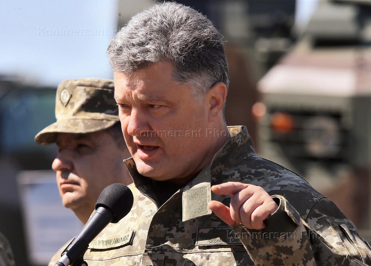 Президент Украины Петр Порошенко (в центре) во время посещения Учебного центра ВСУ.