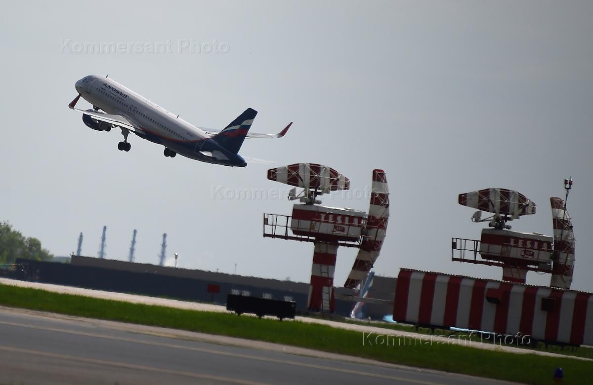 Жанровая фотография. Самолет авиакомпании "Аэрофлот" во время взлета в аэропорту "Шереметьево".