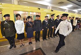 Выставка ретро-вагонов посвященная 80-летию Московского метрополитена.