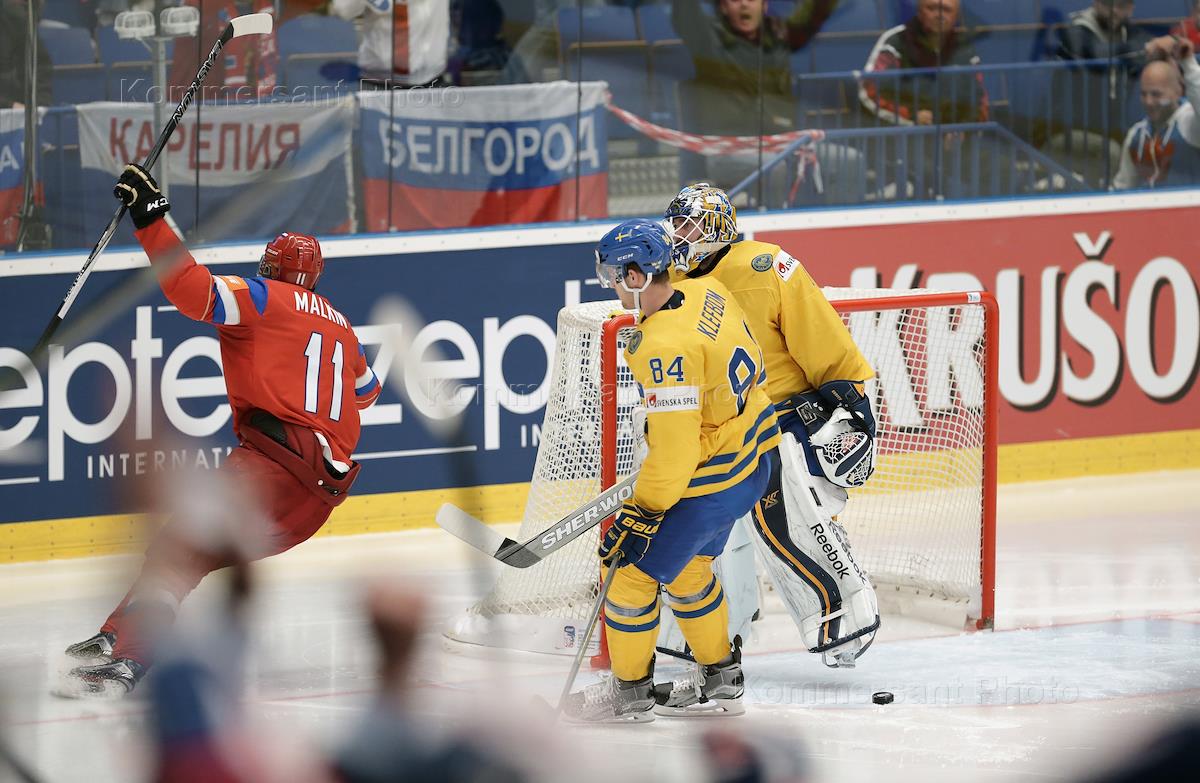 Чемпионат мира по хоккею. 1/4 финала. Матч между сборными командами России и Швеции. Российские…