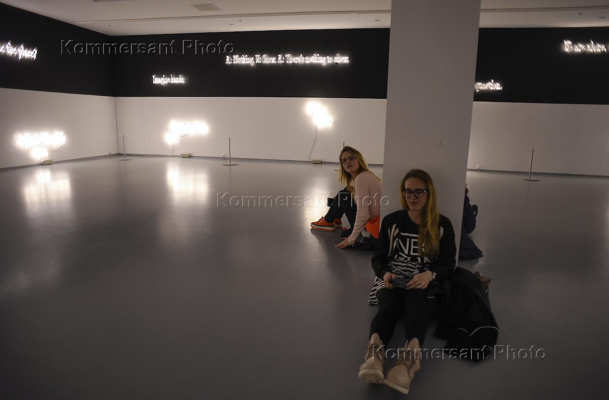 Ночь музеев в Москве. Посетители на выставке в "Ночь в квадрате", посвященной столетнему юбилею…