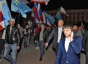 Глава Республики Крым, председатель Совета министров Республики Крым Сергей Аксенов (в центре) и…