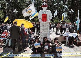 Представители "Кредитного майдана" проводят голодовку у здания Верховной Рады Украины. Участники…