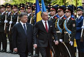 Президент Украины Петр Порошенко (слева) и президент Словакии Андрей Киска (справа) во время…