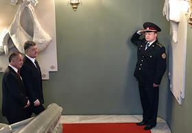 Президент Украины Петр Порошенко (слева) и президент Европейского совета Дональд Туск (справа) во…