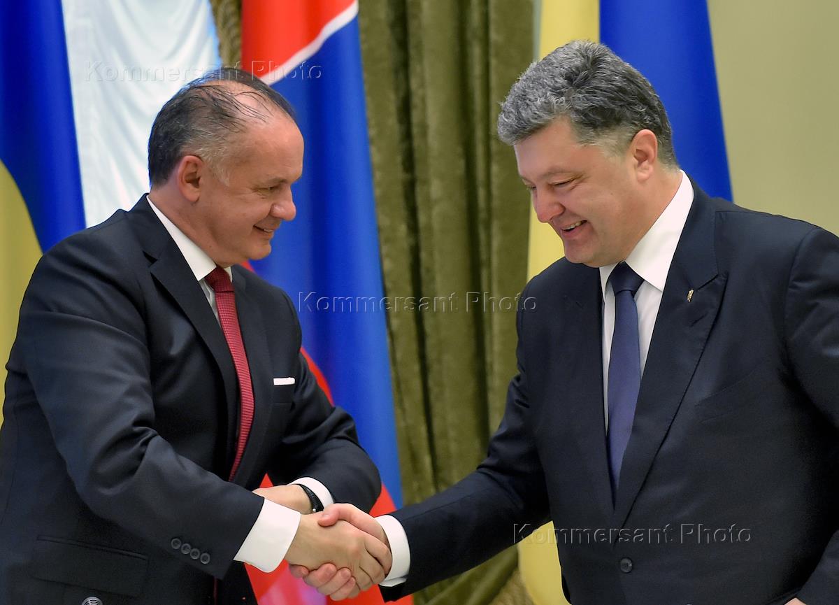 Президент Украины Петр Порошенко (слева) и президент Словакии Андрей Киска (справа) во время…
