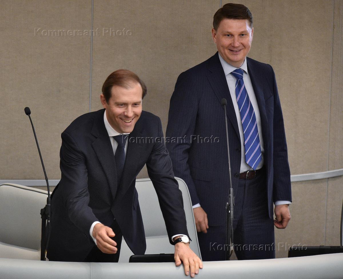 Министр промышленности и торговли России Денис Мантуров (слева) во время пленарного заседания…