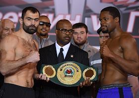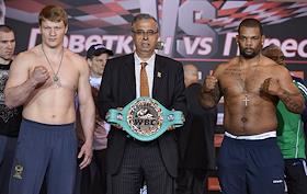 Официальная процедура взвешивания перед боем Александра Поветкина и Майка Переса в академия Бокса «Boxing & Gym».