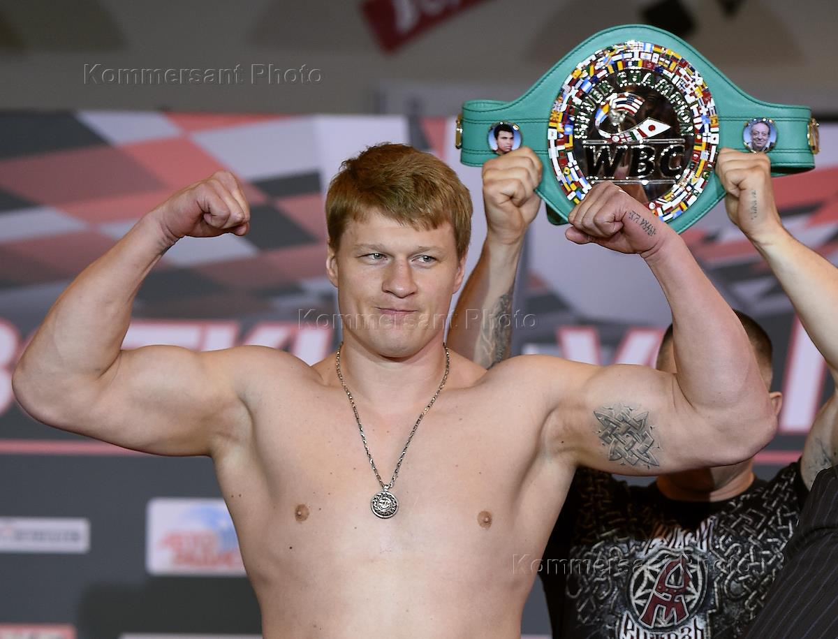 Российский боксер Александр Поветкин во время официальной процедуры взвешивания перед своим боем с…