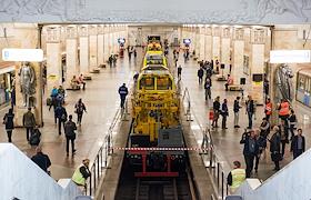 Выставка хозяйственных поездов, в рамках празднования 80-летия Московского метрополитена, прошла на станции метро "Партизанская".