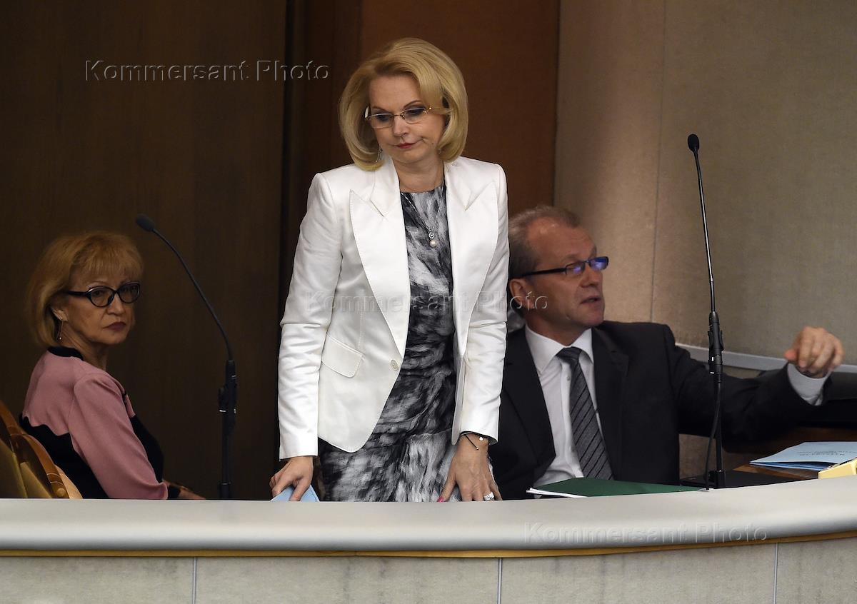 Председатель Счетной палаты России Татьяна Голикова во время пленарного заседания Государственной…