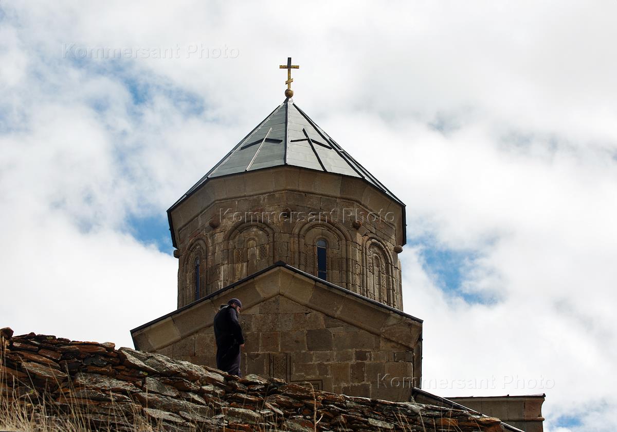 Виды Грузии. Казбеги — климатобальнеологическая курортная местность. Церковь Святой Троицы в Гергети.