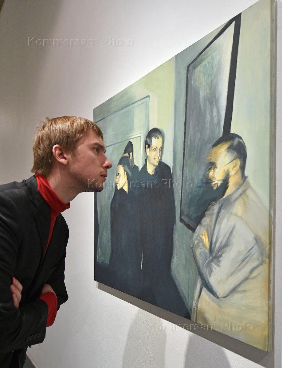 Посетитель на церемонии открытия персональной выставки художника Кирилла Гаршина "Полароид 300" в…