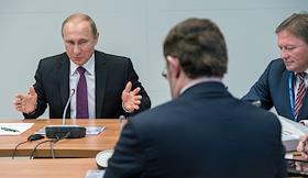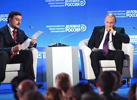 Экономика и бизнес Пленарное заседание бизнес-форума общественной организации «Деловая Россия» с участием президента России Владимира Путина в гостинице "Украина".
