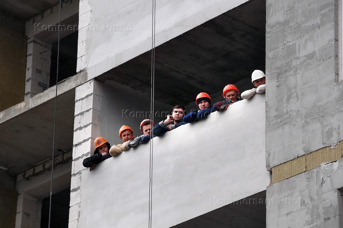 Рабочие на стройтельстве дома, во время нового мирового рекорда белорусского атлета Кирилл Шимко,…