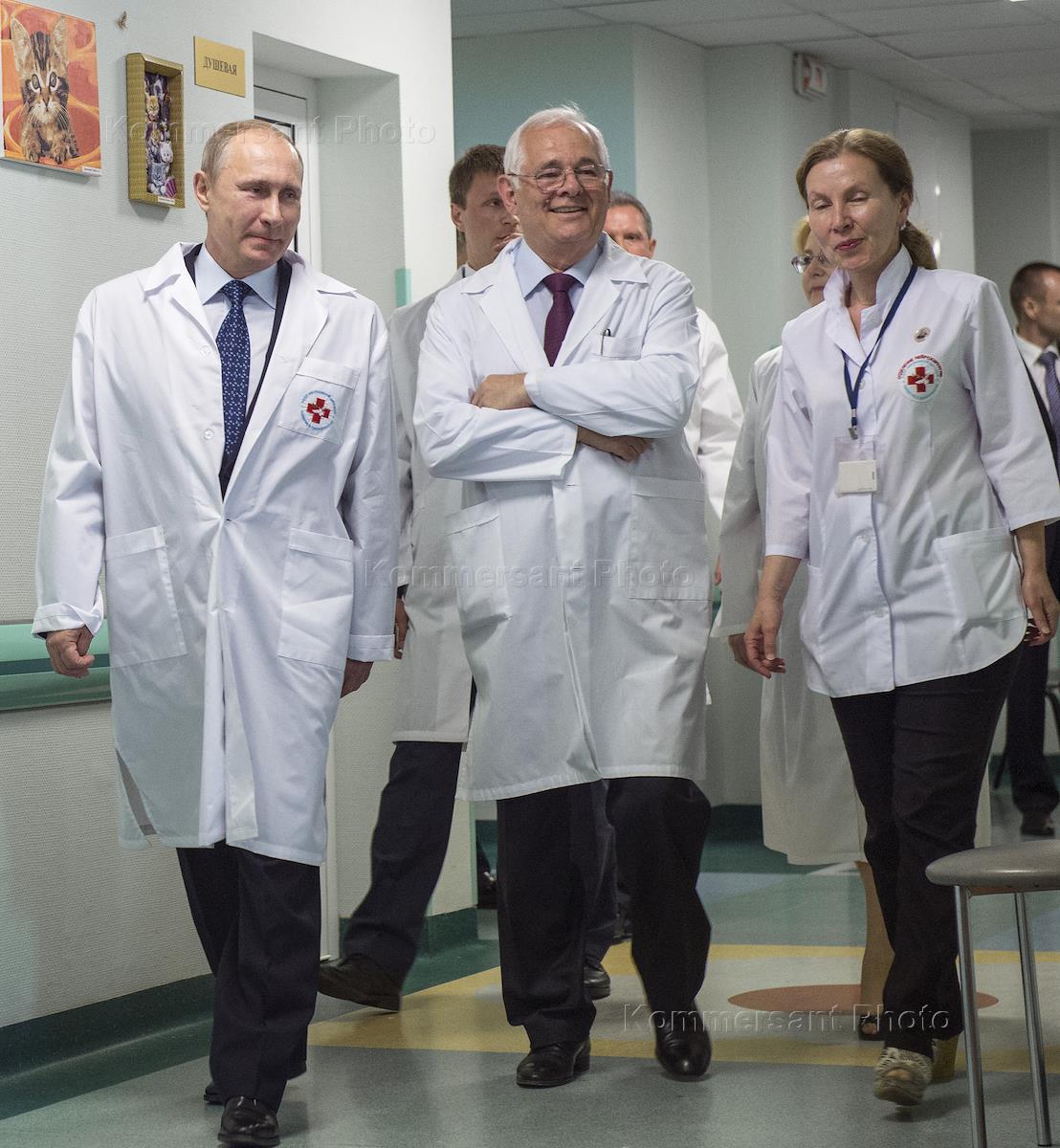 Президент России Владимир Путин (в центре) и директор НИИ неотложной детской хирургии и…