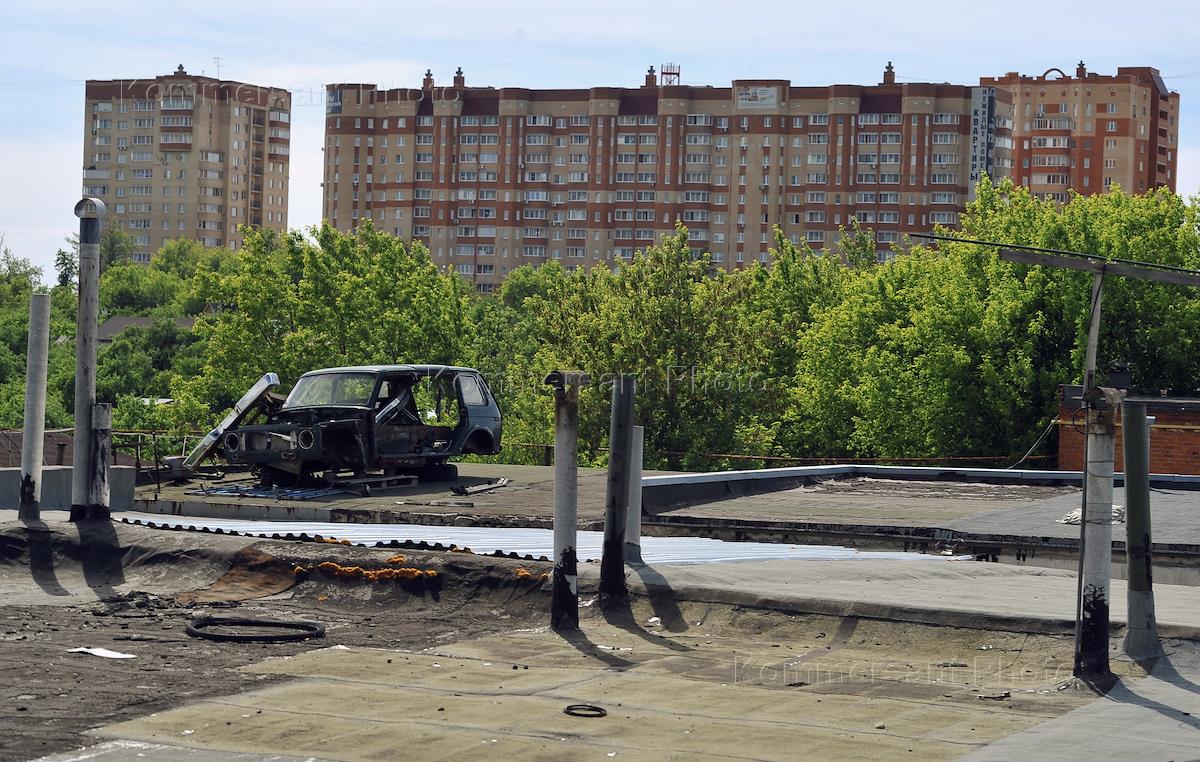 Виды Подольска. Каркас автомобиля на крыше гаража.