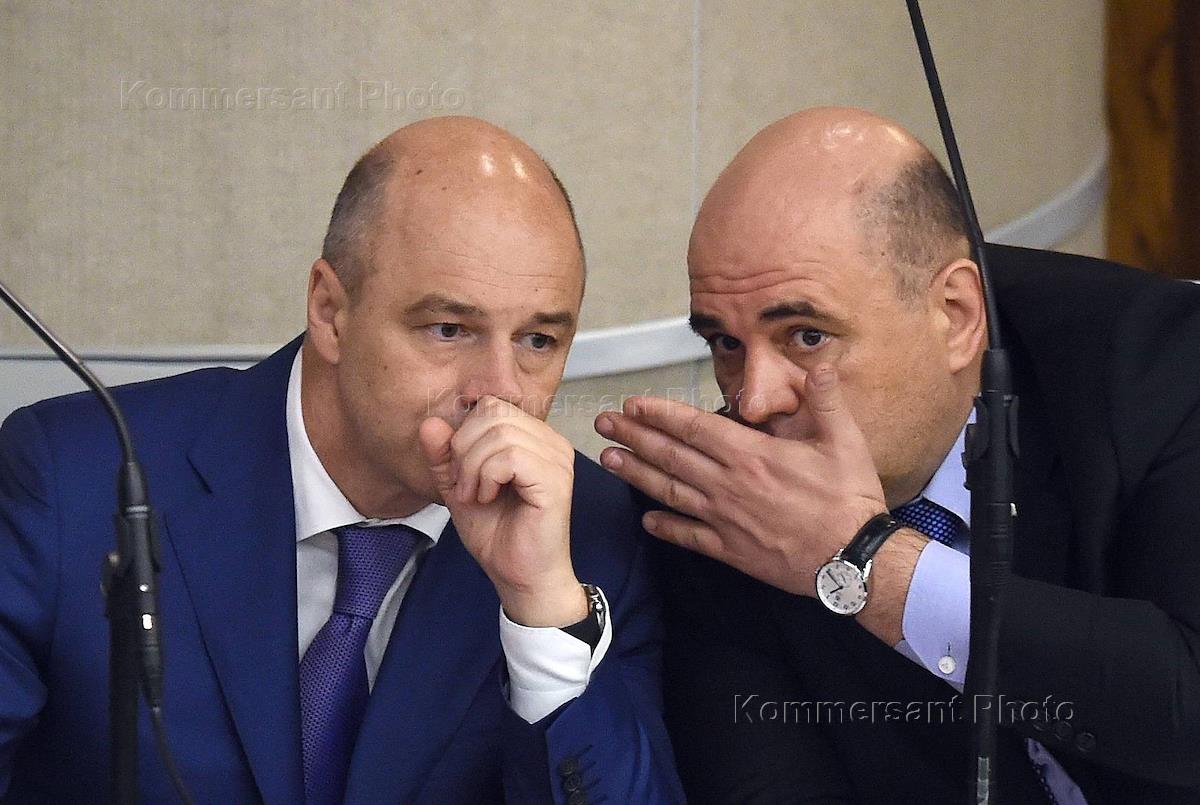 Министр финансов России Антон Силуанов (справа) и его заместитель Сергей Шаталов (слева) во время…