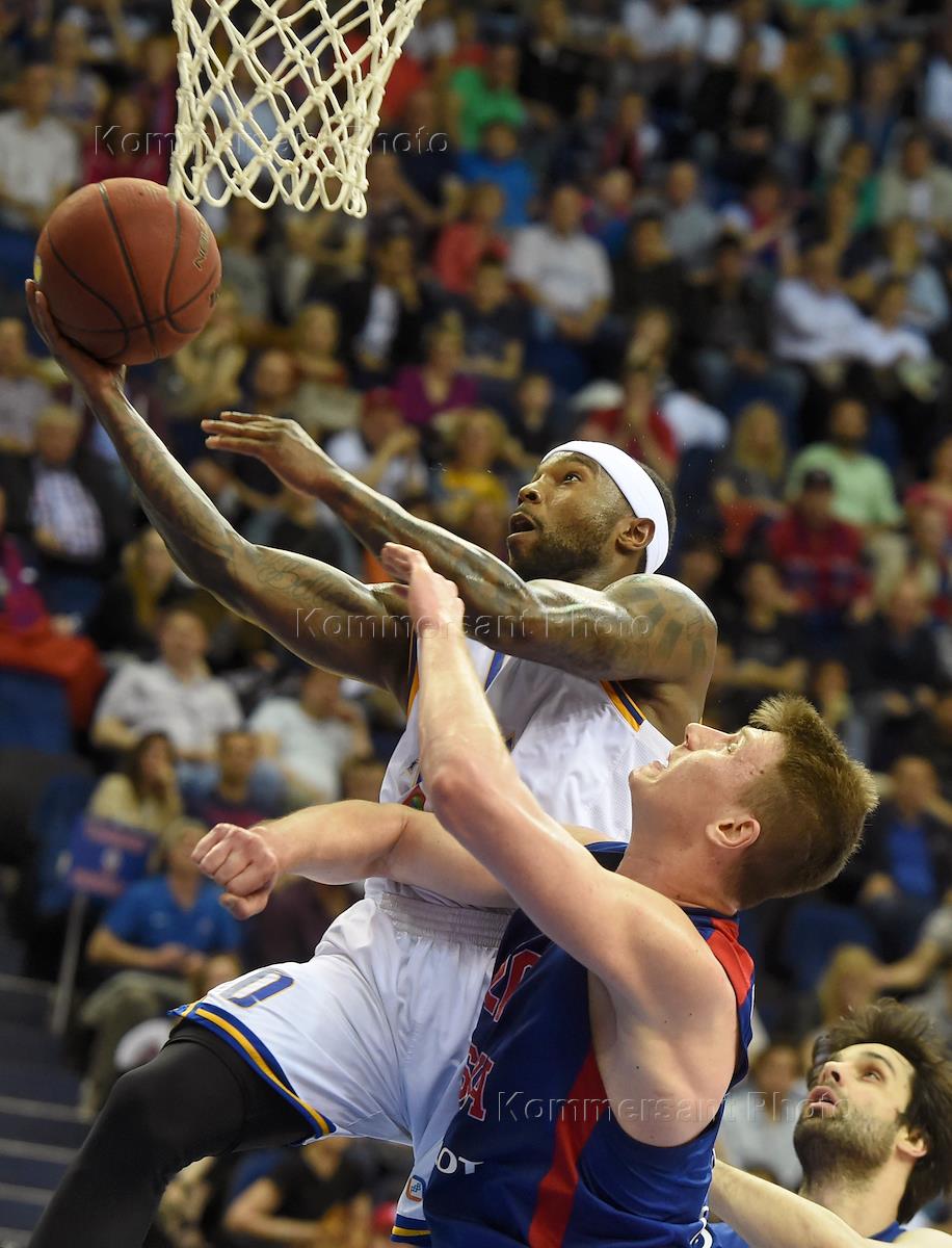 Единая лига ВТБ по баскетболу. Игрок команды ЦСКА (Москва) Аарон Джексон (в центре) во время матча…