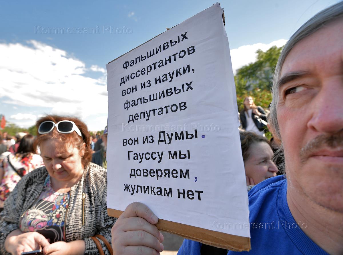 Участники митинга "За науку и образование" на Суворовской площади с надписью на плакате "Не…