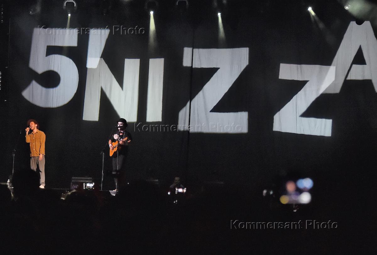 Концерт группы 5'Nizza прошел в клубе Stadium Live. Солисты Андрей Запорожец (слева) и Сергей Бабкин…
