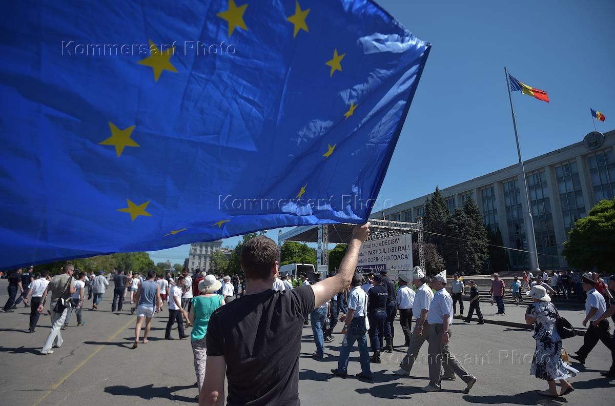 Массовый антиправительственный митинг прошел в Кишиневе. Участники акции с флагами Евросоюза и…