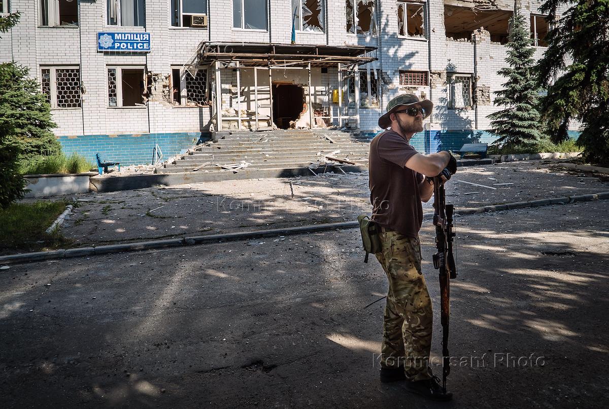 Политическая ситуация в Донецке. Украинский боец у здания районного отделения милиции города…