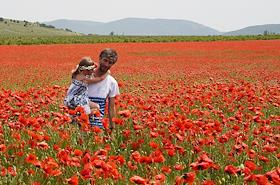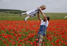 Жанровая фотография. Маковое поле. Папа с дочкой.