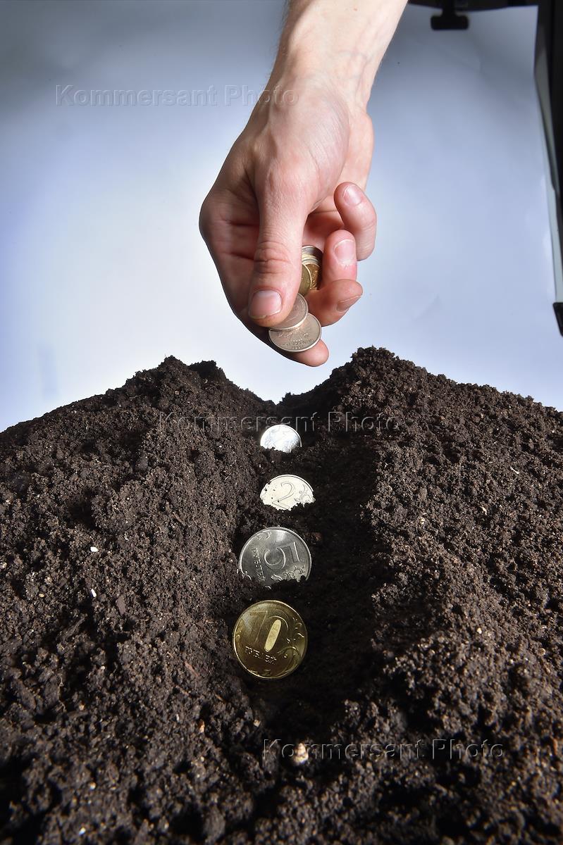 Обложка для журнала "Деньги". Посадка денег в землю.
