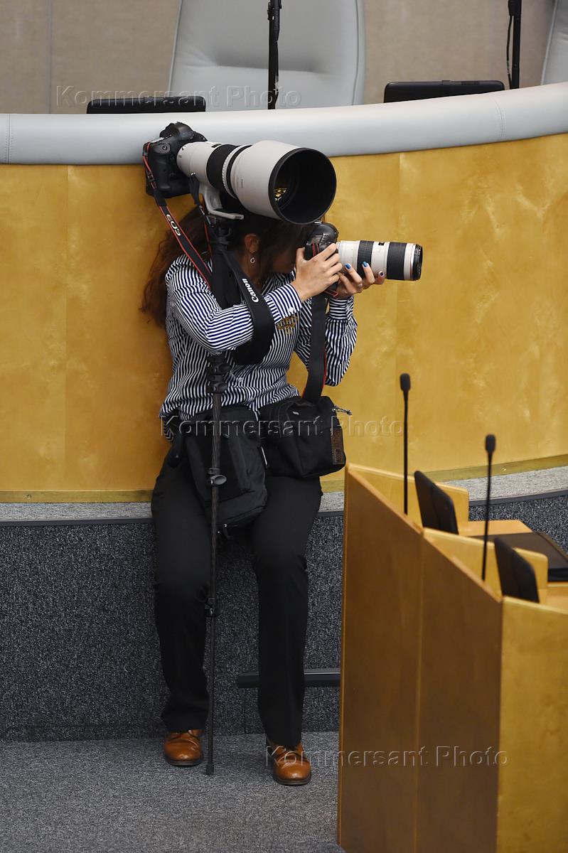 Пленарное заседание Государственной думы России. Фотограф во время заседания.