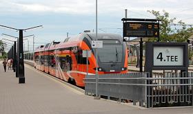 Балтийский вокзал. Пригородный поезд производства Швейцарии у платформы.