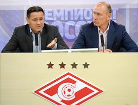 Новый тренера футбольной команды "Спартак" (Москва) Дмитрий Аленичев (слева) и генеральный директор…