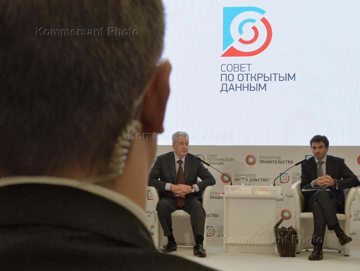 Мэр Москвы Сергей Собянин (слева) и министр России по вопросам Открытого правительства Михаил Абызов…