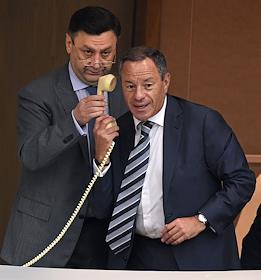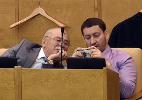 Член комитета Государственной думы (ГД) России по финансовому рынку Борис Кашин (слева) и…