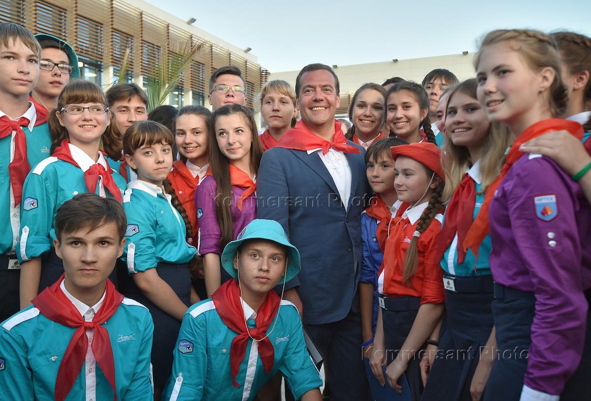 Рабочая поездка председателя правительства России Дмитрия Медведева в Крым. Мероприятия, посвященные 90-летию ВДЦ "Артек".