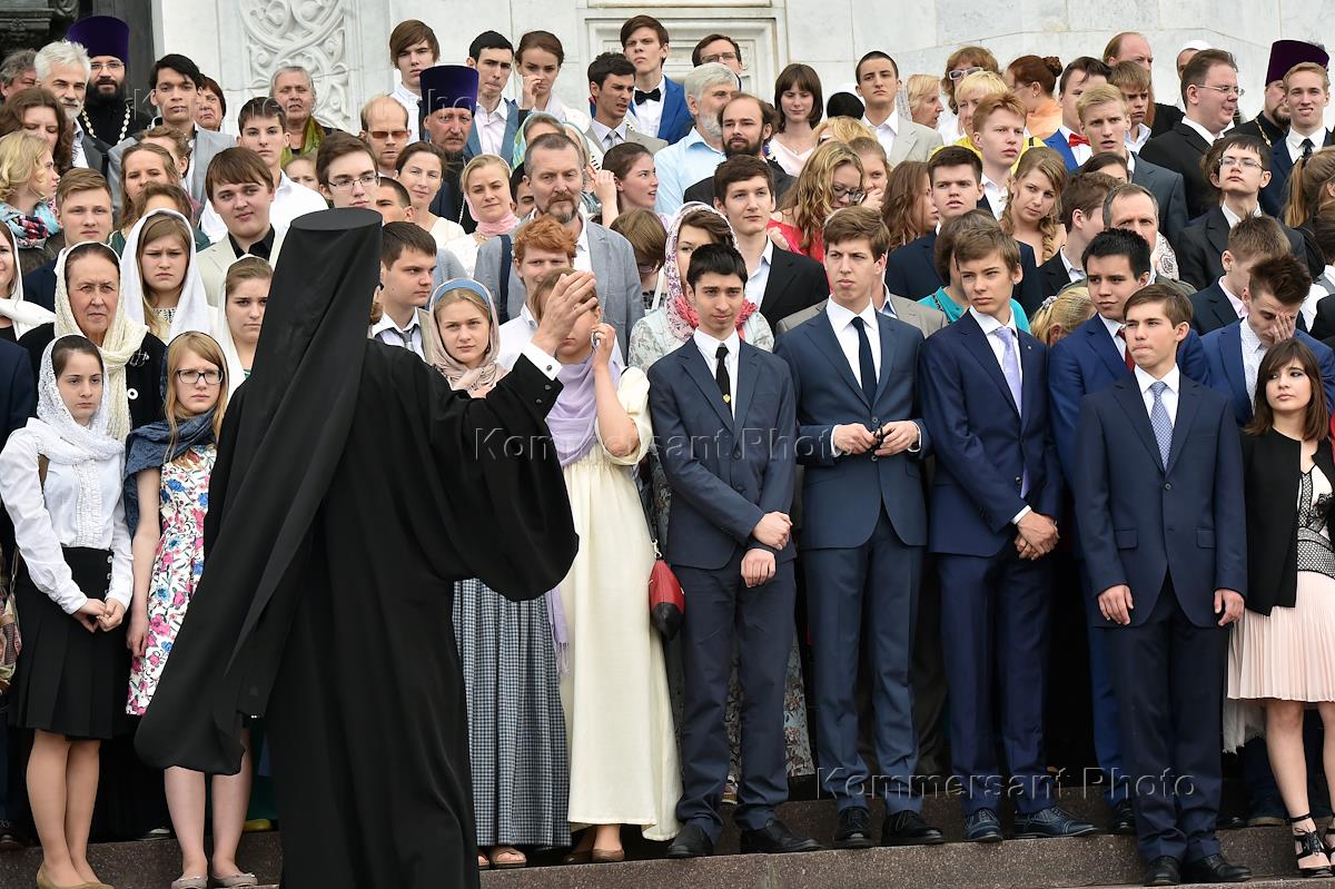 Участники торжественного выпускного православных школ и гимназий города Москвы и молебена по этому…